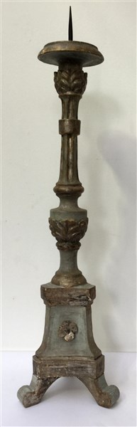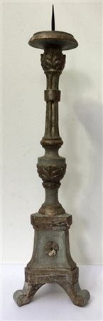 Antico candeliere tripode in legno laccato (h cm 105) (difetti)