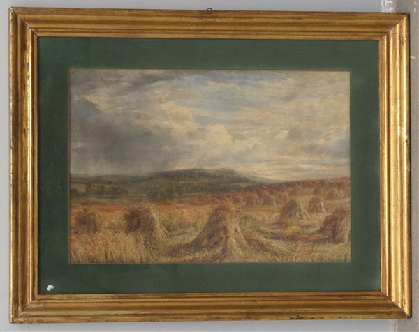 Ignoto della fine XIX inizio XX Secolo "Covoni" olio su tela applicata a masonite (cm 47x63) Reca firma non coeva in basso a sinistra Adolfo Tommasi. In cornice