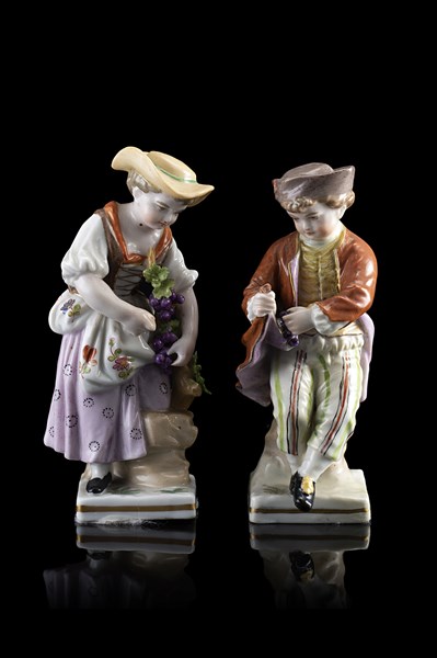 Manifattura di Hochst, secolo XIX "Contadini con uva" coppia di figure in porce
