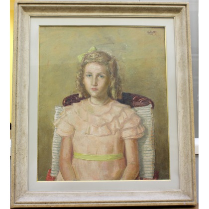 "Ritratto di ragazza" olio su compensato (cm 60x50) Firmato in alto a destra. In cornice (lievi difetti)