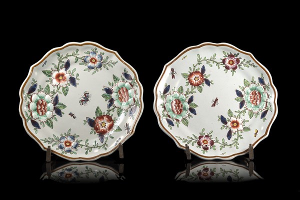 Manifattura di Pasquale Rubati, Milano, 1760/70. Coppia di piatti polilobati in
