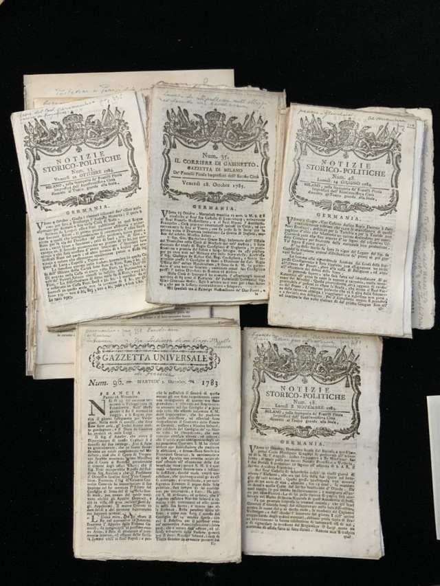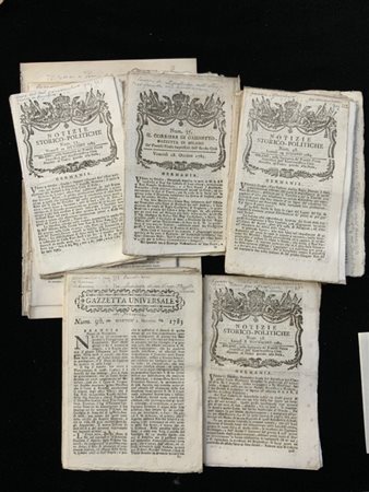 [AEROSTATICA] Piccolo lotto di gazzette dell'epoca riportanti notizie sulle prime mongolfiere. Si segnalano alcuni numeri delle Notizie storico politiche del 1784 dedicai agli esperimenti di Pierre De Rozier