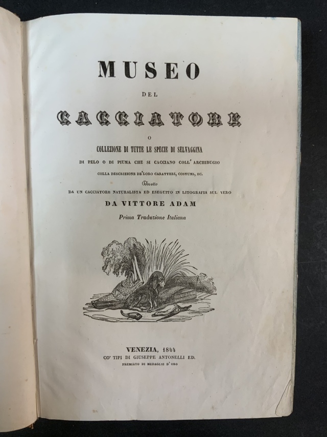 ADAM, Jean Victor Vincent (1801-1867). Museo del cacciatore. Venezia: Antonelli, 1844. volume con dorso in pelle. Non collazionato e difetti da esaminare.