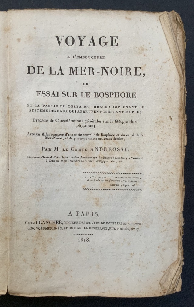 ANDREOSSY, Antoine François (1761-1828) - Voyage a l'embouchure de la Mer-Noire ou essai sur le Bosphore. Paris: Plancher, 1818.