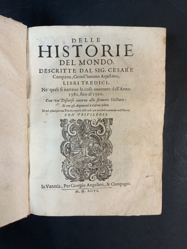CAMPANA Cesare. Delle historie del mondo libri XIII. Venezia: Angelieri, 1596.