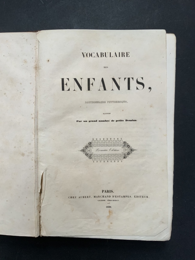 DAUMIER, Honore. Vocabulaire des Enfants . Dictionnaire pittoresque illustré par un grand nombre, de petits dessins. Parigi: Aubert Éditeur 1839. 4to, legatura coeva con dorso in pelle e titolo in oro. Non collazionato e difetti da esaminare.