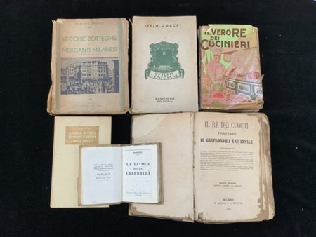 [GASTRONOMIA] lotto di 6 volumi di gastronomia tra cui si segnala:ZEZZOS Rossano. Vecchie botteghe e mercanti milanesi. Milano: Bottega del 900, 1934 e ZORZI Osterie veneziane. Bologna: Zanichelli, 1928. Non collazionato e difetti da esaminare.