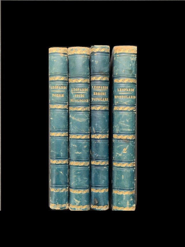 LEOPARDI. Lotto di 4 edizioni del XIX secolo. Legatura coeva in mezza pelle azz