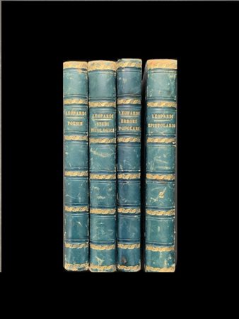 LEOPARDI. Lotto di 4 edizioni del XIX secolo. Legatura coeva in mezza pelle azzurra con titoli in oro al dorso. Non collazionato e difetti da esaminare.