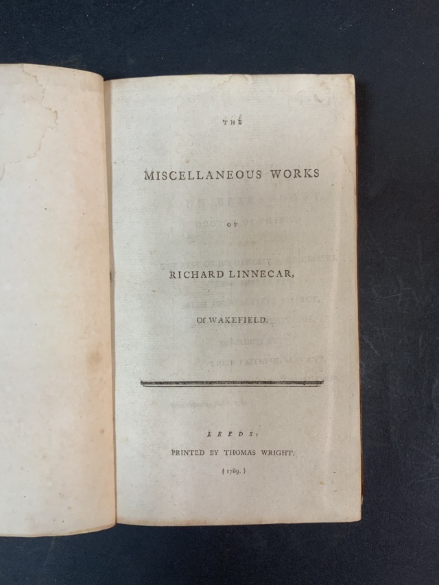 LINNECAR Richard. Miscellaneous works. Leeds: Wright, 1789. 8vo, legatura coeva