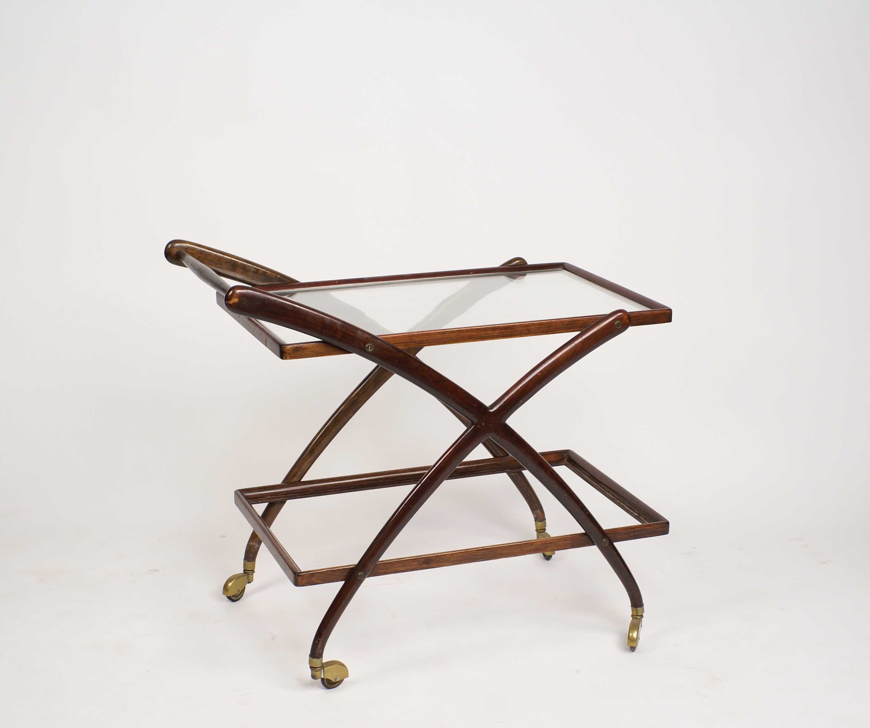 CARRELLO PORTAVIVANDE IN FAGGIO Italia anni 50/60 A due ripiani in vetro provvisto di rotelle Dim. 74x85x49 cm.