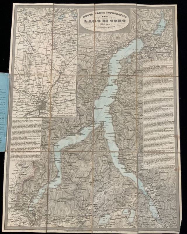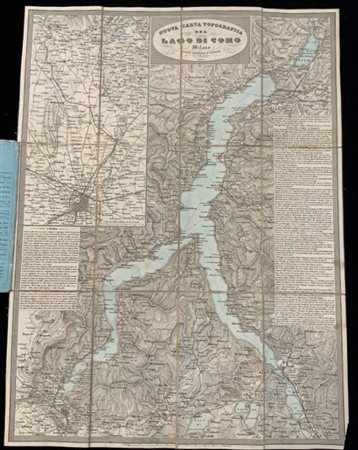 [CARTOGRAFIA] Nuova carta topografica del lago di Como. Milano, Artaria: [c.a. 1860-80] (423 x 585 mm) a colori intelaiata e ripiegata. Non collazionato e difetti da esaminare.