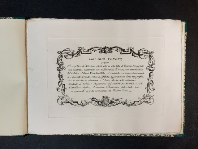 VISENTINI. Isolario veneto. Venezia, 1870 ca. In-4° oblungo; legatura in mezzo marocchino verde in astuccio. Edizione che riprende quella del 1738 con incisioni dai rami originali. Non collazionato e difetti da esaminare.