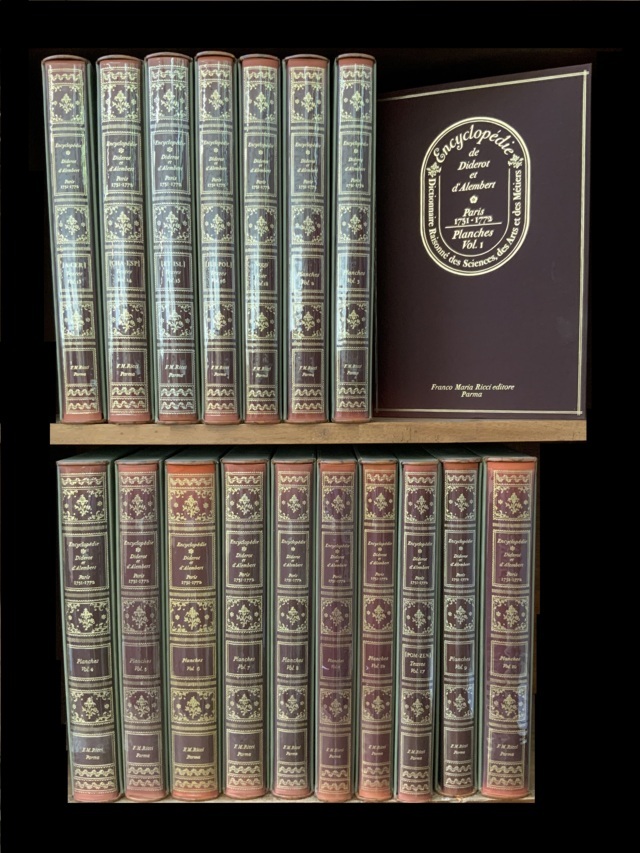 [FACSIMILE] DIDEROT, D'ALAMBERT. Encyclopedie ou dictionnaire raisonné des sciences, des arts et des métiers.... Milano: Franco Maria Ricci, 1970-1980. 17 volumi, rilegature in seta impressa in oro. Celebre prima opera di Franco Maria Ricci nelle vesti di editore e ottima ristampa dell'edizione parigina del 1751- 1772. Non collazionato e difetti da esaminare.