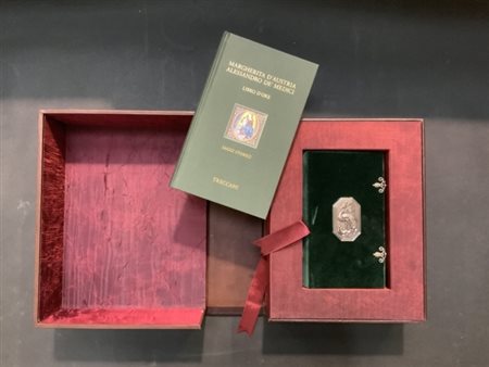 [FACSIMILE] ll Libro d'ore di Margherita d'Austria e Alessandro de' Medici, conservato presso la Biblioteca dell'Accademia Nazionale dei Lincei e Corsiniana (ms. 55.K.16) Treccani, 2007. (110 x195 mm) 7 miniature a tutta pagina a colori , 20 iniziali miniati e più di 20 iniziali decorate. Stampa del facsimile su carta pergamenata Luxor delle Cartiere Fedrigoni. Riproduzione dell'oro in polvere e in pasta; oro in lamina 22k, rigature a secco. Tiratura limitata di 750 copie numerate