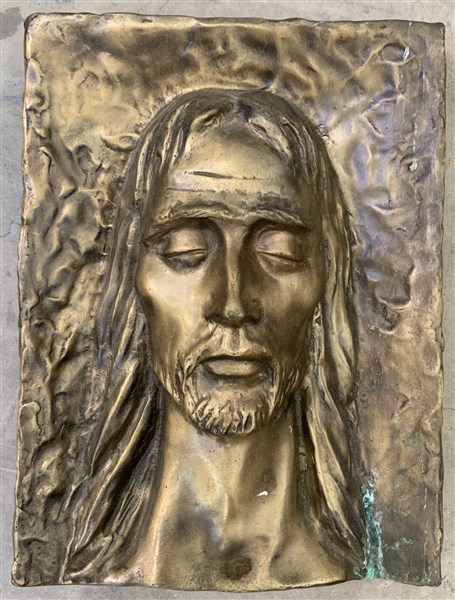 Formella in bronzo con effigie di Cristo in altorilievo (cm 31x42) (difetti)