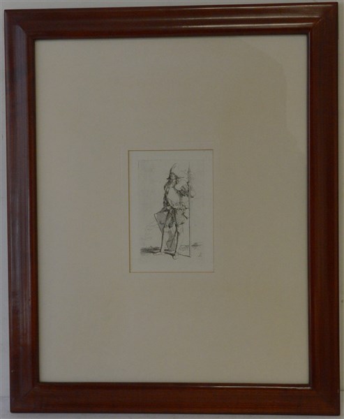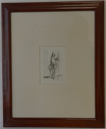 Salvator Rosa "Soldato con scudo e alabarda" acquaforte (mm 140x90) In cornice. Provenienza: Valeria Bella, Milano