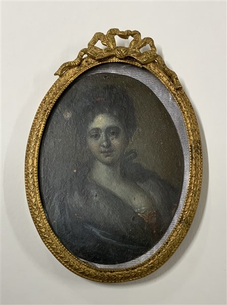 Scuola del sec. XVII "Gentildonna" miniatura ovale su rame(cm 7x5,5)(difetti)