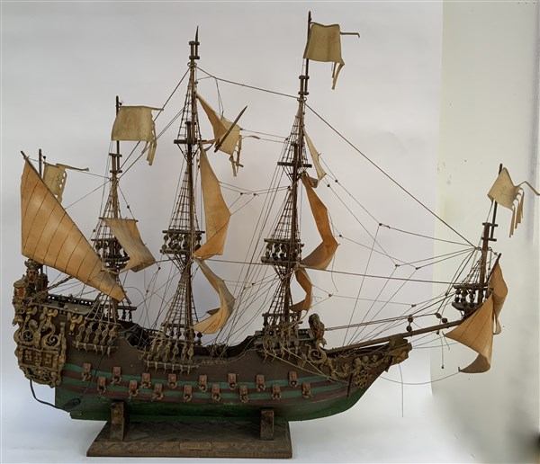 Modello di galeone francese ''Le Soleil Royal'' in legno con elementi decorativ