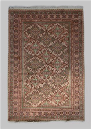 Tappeto Samarkanda, Turkestan Orientale, secolo XX. Decoro a medaglioni romboid