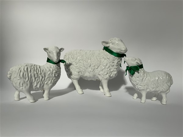 Lotto di tre sculture in porcellana a forma di pecora (h max cm 25) (lievi difetti)