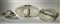 Gruppo di tre cestini in ceramica bianca intrecciata decorati con rose dipinte