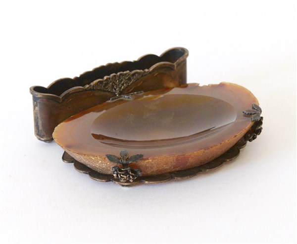 Posacenere in agata montato in argento cesellato a fiori e motivi vegetali.Argentiere Mazze (difetti)