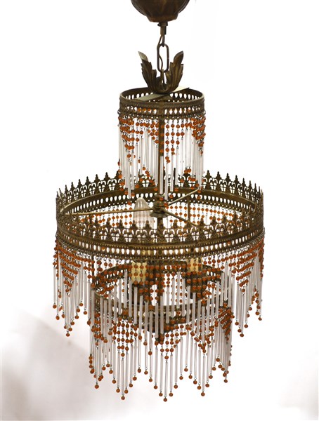 Lampadarietto a tre luci con struttura in metallo traforato decorato da canne i