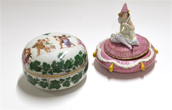 Manifatture diverse, lotto di due scatole con coperchio in porcellana decorata