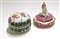Manifatture diverse, lotto di due scatole con coperchio in porcellana decorata in policromia (difetti)