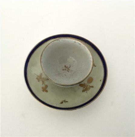 Manifatture diverse. Lotto composto da una tazzina di Cozzi ed un piattino di Bassano. Secolo XVIII (difetti)