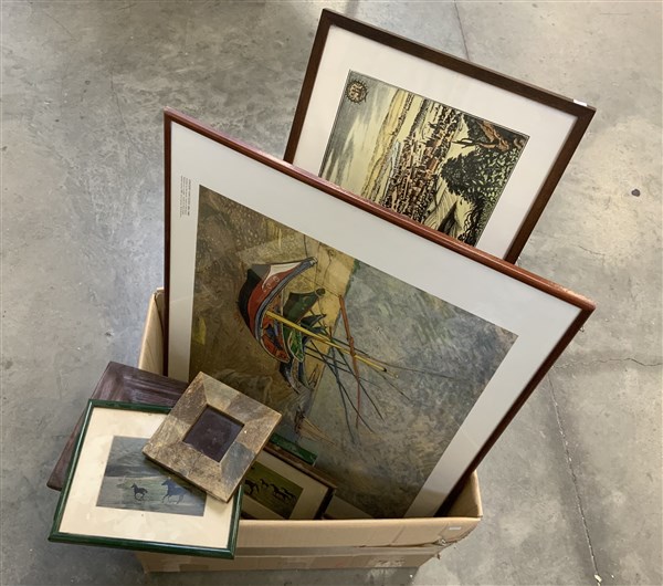 Cartone contenente riproduzioni e cornici di dimensioni differenti (difetti)