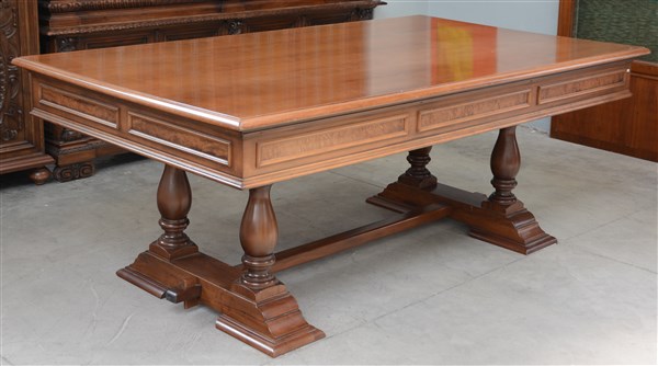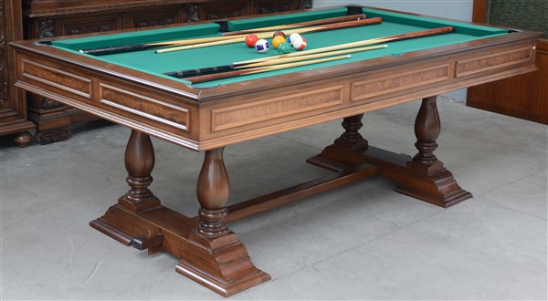 Biliardo con fascia riquadrata e gambe a balaustro, piano di chiusura in legno