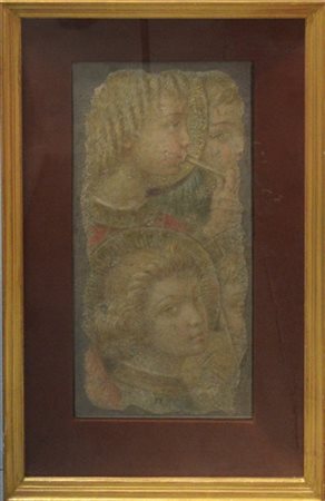 Strappo d'affresco dall'antico raffigurante "Putti che suonano strumenti musicali" (cm 54x29). In cornice (difetti)