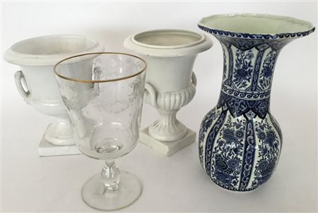 Lotto composto da quattro vasi in ceramica e vetro di manifatture e misure diff
