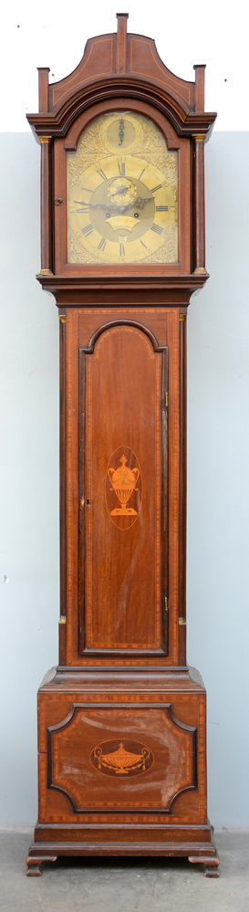 E. HANDSCOMB WOBURN Orologio a cassa lunga in legno con cimasa, quadrante firma