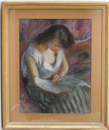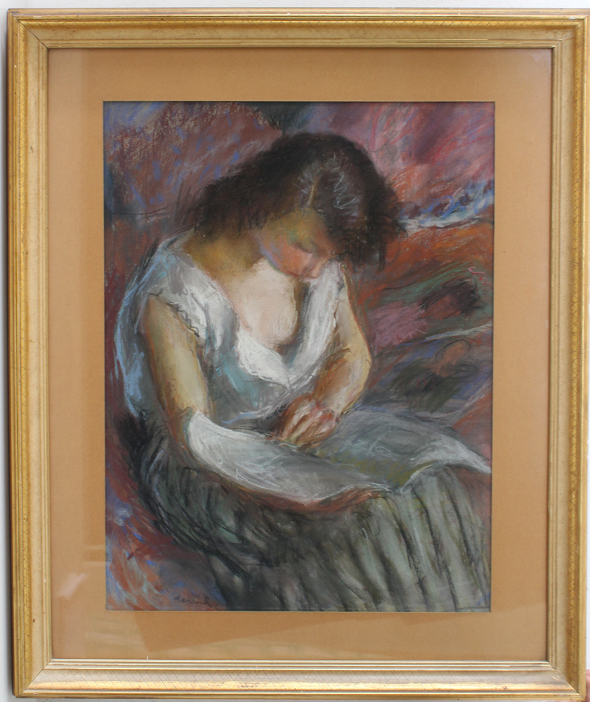 Pierre Deval "Ragazza che legge" pastelli su carta cm 59x45 firmato in basso a