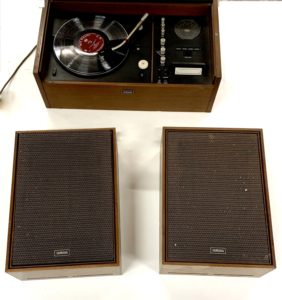 Giradischi Yamaha con casse in legno di teak. Italia, anni '60. (difetti)