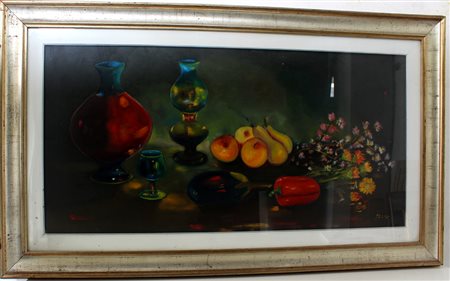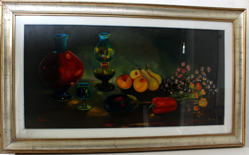 Spatos "Natura morta" olio su tela cm 120x60 firmato in basso a destra. In corn