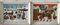 coppia di dipinti Naif raffiguranti paesaggi con figure, acrilici su tela