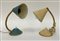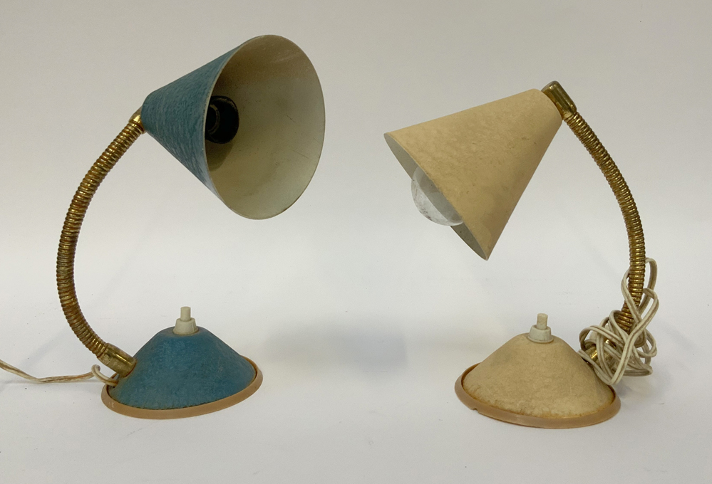 Lotto composto da due abat-jour in ottone e metallo beige e azzurro. Italia, anni '40/'50. (h cm 24) (difetti)