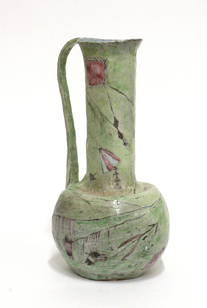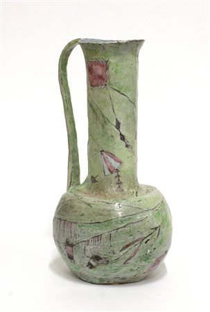 Rachele Bianchi Vaso con ansa in ceramica smaltata in policromia sotto vetrina r