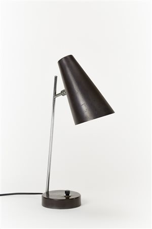 Lampada da tavolo. Italia, anni '50. Ottone nichelato e alluminio laccato marrone. (h cm 40) (lievi difetti)