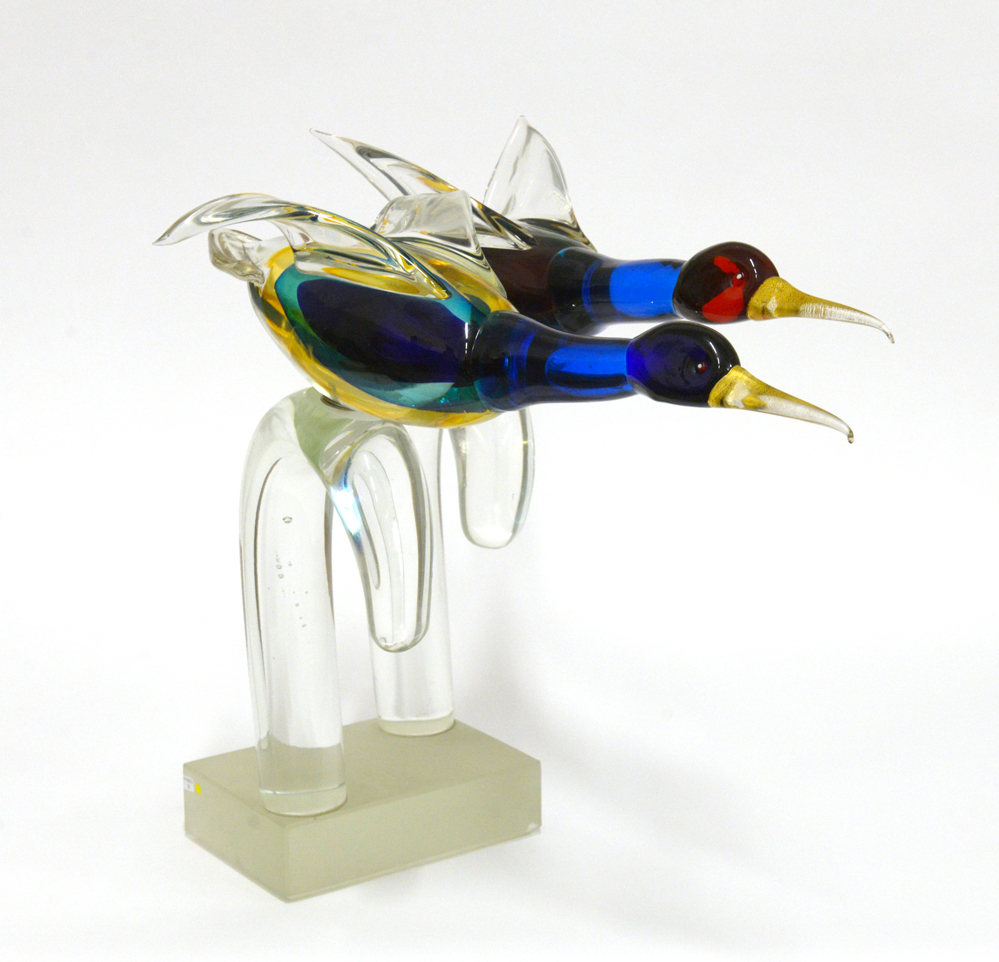 Manifattura di Murano "Anatre in volo" Scultura in vetro massello trasparente i