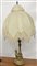Lampada da tavolo con basamento in bronzo a patina dorata che raffigura un satiro che sorregge uno stelo a palmette; paralume in seta avorio. Anni '20. (h cm 81,5) (lievi difetti)