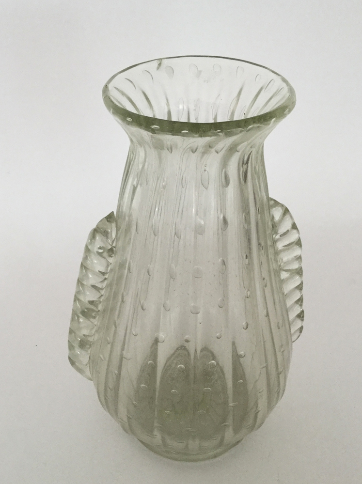 Barovier & Toso Vaso a morise in vetro incolore costolato con inclusione regolar