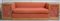 Divano letto in legno di noce con comodini laterali ad anta in vetro decorata con elementi diagonali. Rivestimento in tessuto rosso con motivo quadrettato. Milano, prima metà secolo XX. (cm 308x90,5x83) (difetti e mancanze)