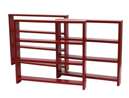 Lotto di tre librerie in legno verniciato rosso. Italia, 1989. (Misure diverse) (difetti)