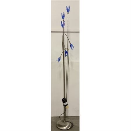 Lampada da terra in metallo cromato con paralumi in a forma di fiore in vetro soffiato blu. Italia, anni '90. (h cm 185) (lievi difetti)