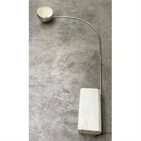 Lampada da terra ad arco composta da una base parallelepipeda in marmo bianco d